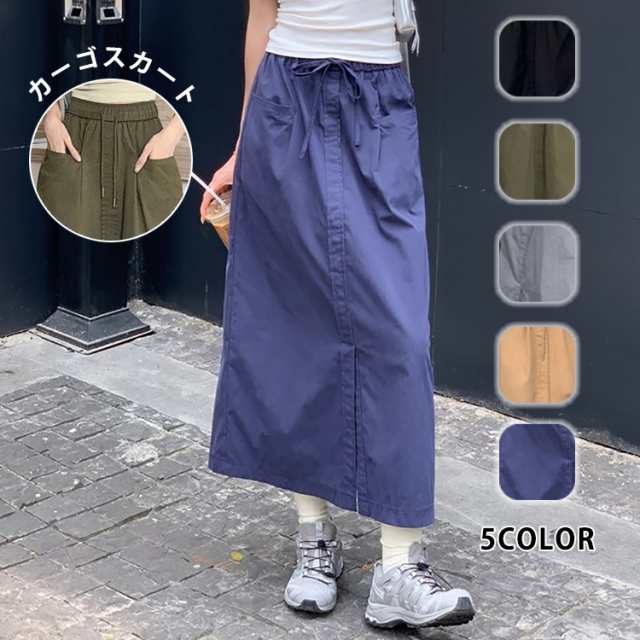 送料無料 カーゴスカート ミリタリースカート Aライン ロングスカート マキシ丈 タイトスカート レディース ポケット付き ウエストゴム ボトムス 着痩せ スリット カジュアル おしゃれ 体型カバー シンプル ロング丈 大人 オールシーズン 春 夏 秋 フリーサイズ