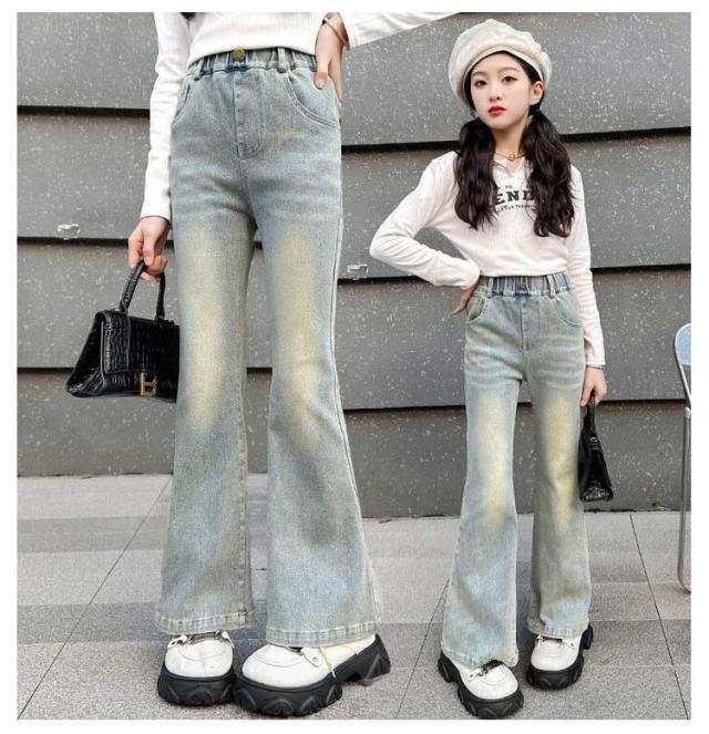 160 デニム 140 130 ジーンズ ウエストゴム ジーンズ キッズ 150 フレアパンツ 170cm ジュニア 子供服 ジーパン Jeans 女の子 ロングパンツ 秋服 韓国ファッション ダンス 衣装 ズボン ボトムス おしゃれ ブーツカット 小学生 中学生