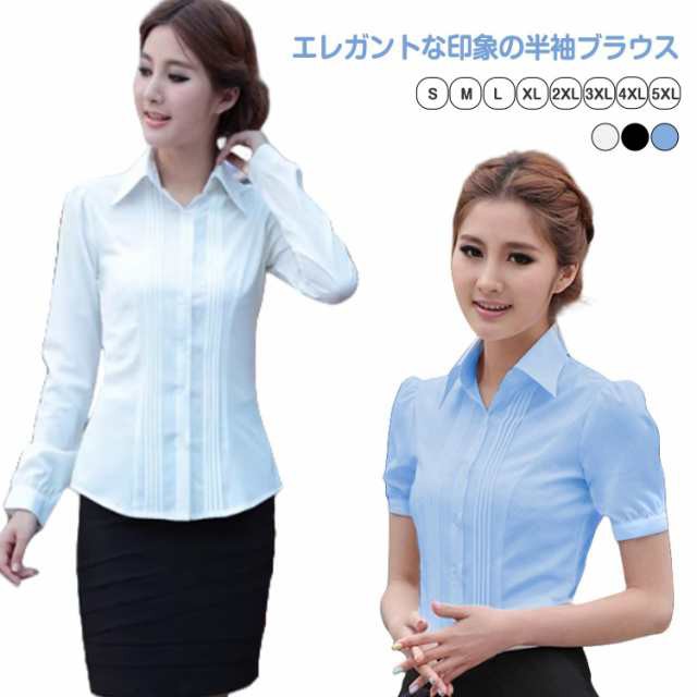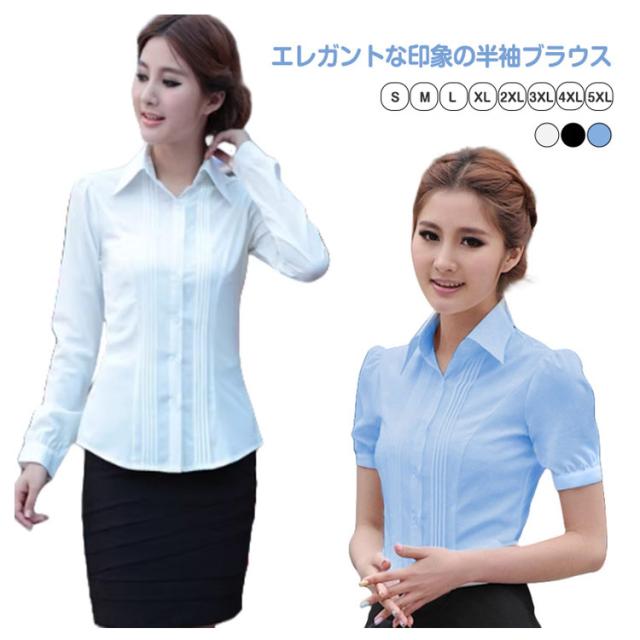 半袖 ブラウス 可愛い 事務服 シャツ 企業 オフィス ユニフォーム シンプル ビジネス 半袖シャツ 制服 大人女性 OL おしゃれ 半袖ブラウス レディース 春 無地 仕事用 夏 大きいサイズ トップス ワイシャツ ブラック ブルー 通勤 ビジネス