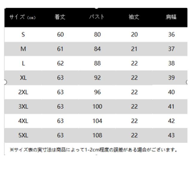 | サイズ | S M L XL 2XL 3XL 4XL 5XL |