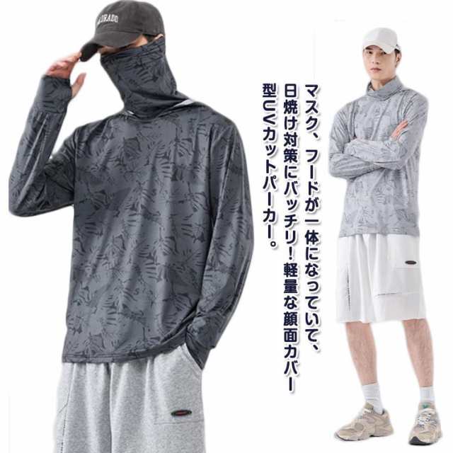 | マスク、フードが一体になっていて、日焼け対策にバッチリ!軽量な顔面カバー型UVカットパーカー。 男女兼用!ラッシュガード フィッシングウエア。着るだけで紫外線対策。UVカットで春から夏にかけての日焼け対策に最適。 通気性優良かつ吸水速乾素材で夏場の汗ばむ季節に快適なサラリとした肌触りのラッシュガード 呼吸できるスポーツ生地で、汗も素早く発散し、吸湿性も高く蒸れにくく、快適に着用できます。擦り傷や、害虫などからも肌を保護。 指穴付きだから手の甲までしっかりガード。 | |