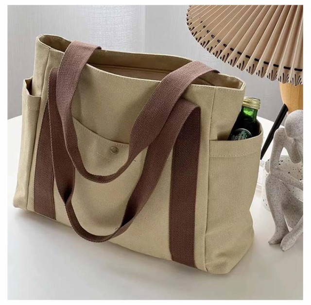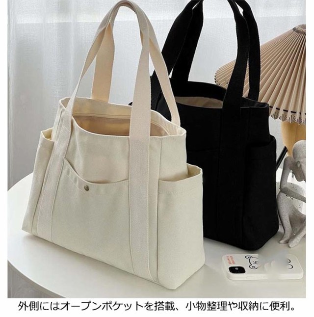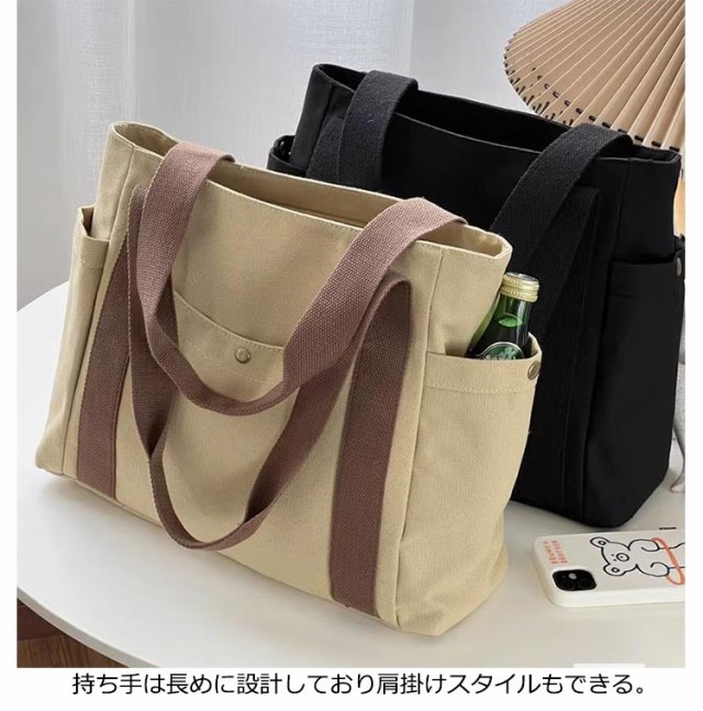 送料無料 トートバッグ キャンバス 肩掛け 無地 マザーズバッグ トート バッグ キャンバストートバッグ キャンバスバッグ 仕切り付き 持ち手 長め レディース メンズ 大きめ 布 A4 横 整理整頓 マチあり 通勤 通学