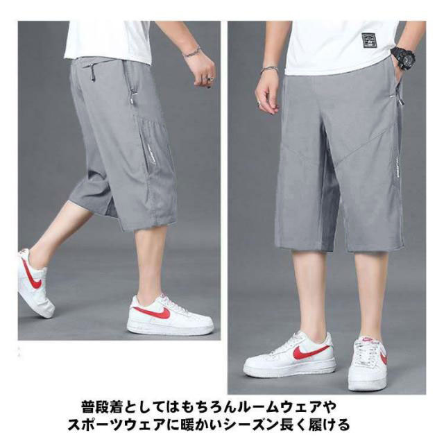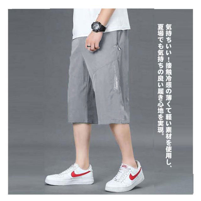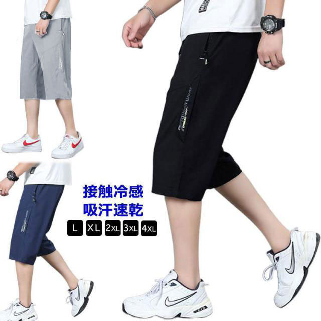 膝下丈 冷感 メンズ 7分丈パンツ スポーツ 夏 クロップドパンツ サマーパンツ ズボン ハーフパンツ ひざ下 ゆったり 接触冷感 ひんやり 大きいサイズ 七分丈 吸汗速乾 ワークパンツ ジャージ 下 ポケット付き アイスシルク カジュアル
