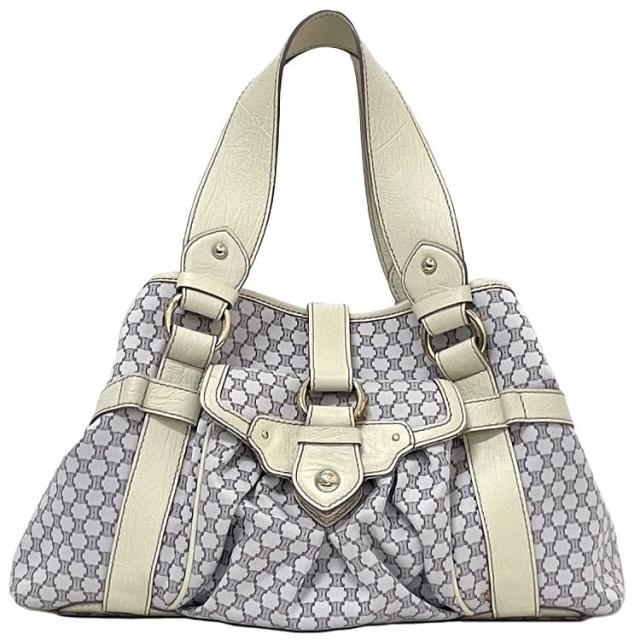 セリーヌ トートバッグ ec-23628 ホワイト パープル パステルカラー マカダム 美品 キャンバス レザー 中古 SO-SA-1026 CELINE 軽い マイクロ ロゴ 総柄 白 軽い 大容量 マグネット ベルトフラップ 肩掛け キャンバスバッグ レディース ブランド 本物 鑑定済み
