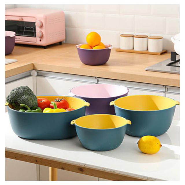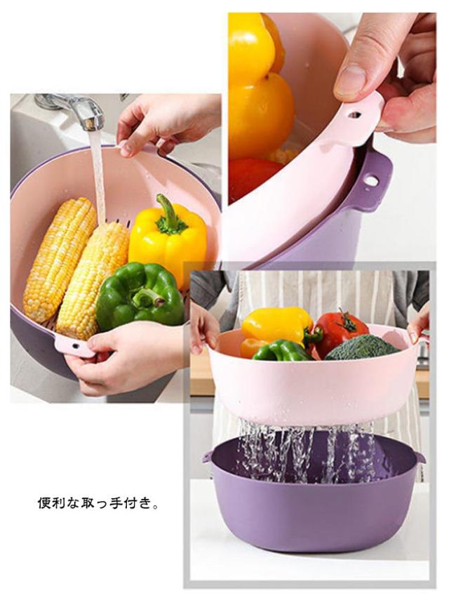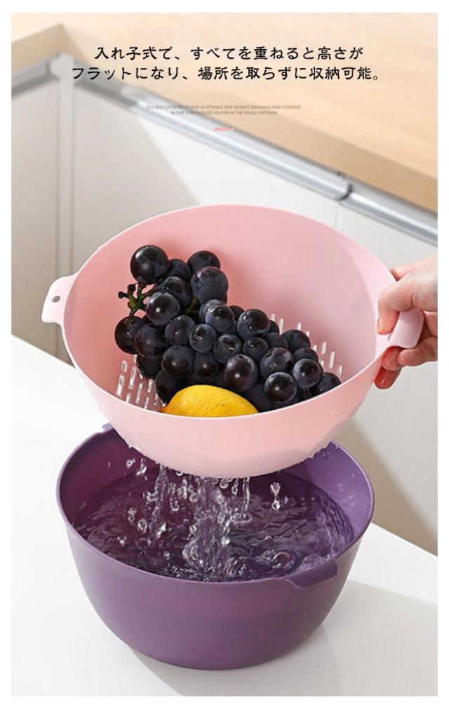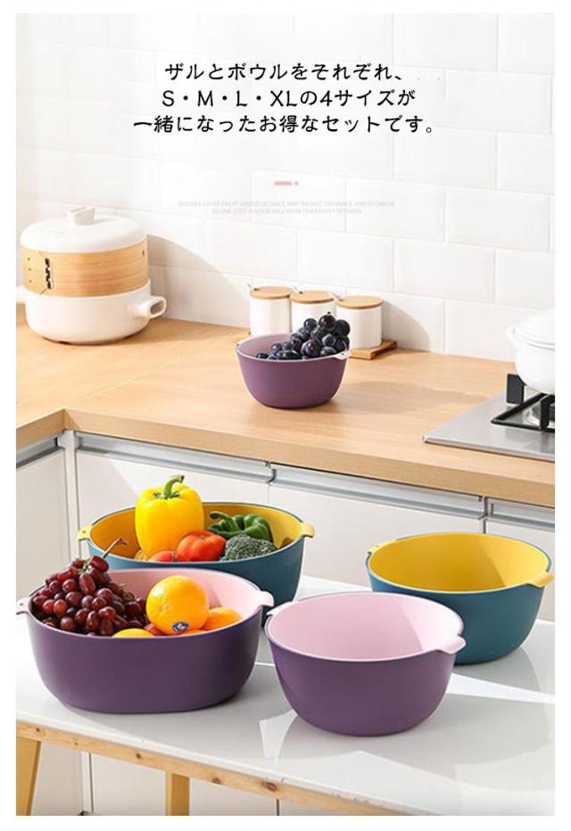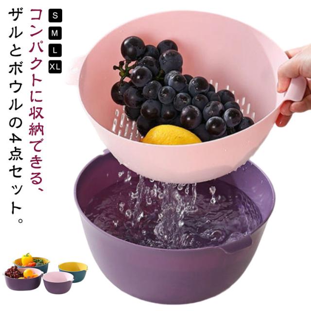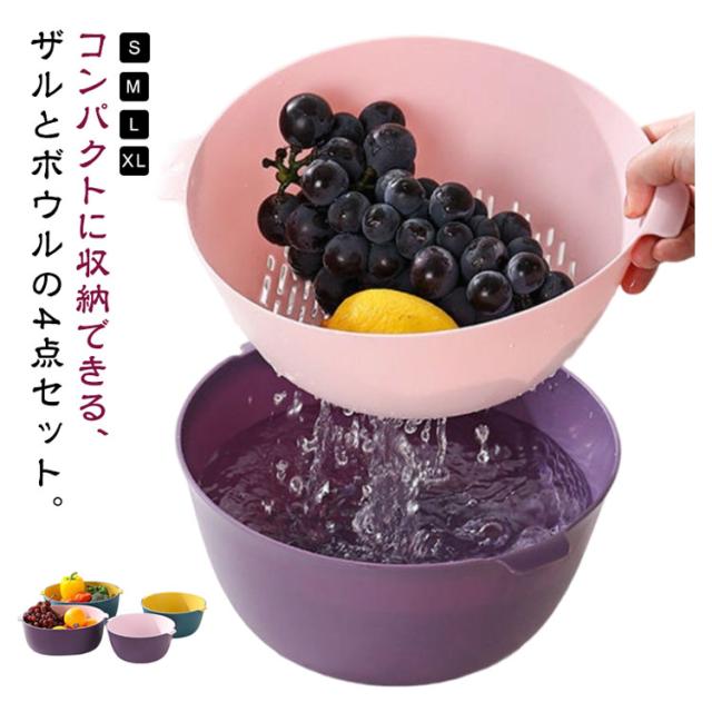 4点セット 丸型 ボウル ザル セット プラスチック 積み重ね すっきり 収納 水切りざる 水切りボウル 取っ手付き ざる ボール 水切り 米とぎ 米研ぎ 下ごしらえ 野菜水切り サラダボウル キッチンツール 調理器具