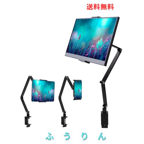 2024最新 モバイルモニタースタンド スマホ タブレット アーム スタンド 折り畳み式 強化アルミ製 耐荷重1.5kg クランプ式 6関節 360度回