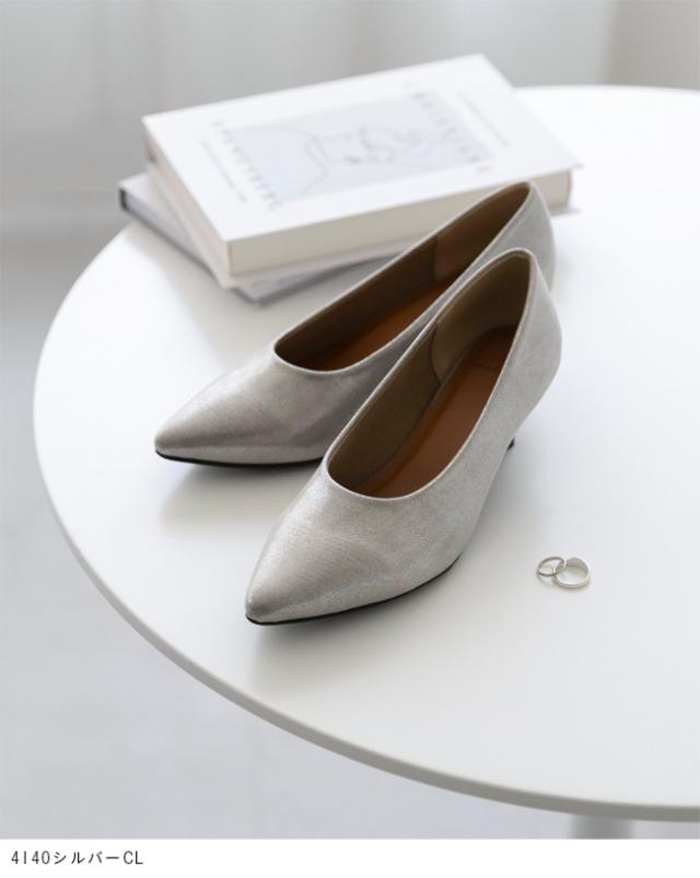 お客さまからご好評いただいている、従来の幅広さん向けパンプス(m15328)はコロンと丸く優しい印象。