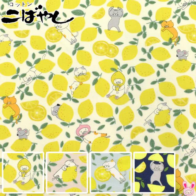 レモン猫 ブロード生地 KTS7121 コットンこばやし (50cm以上10cm単位切り売り)