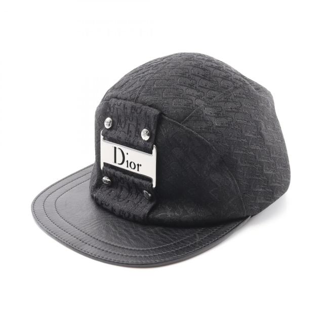 ディオール Dior オブリーク ガリアーノ キャップ 帽子 レザー ポリエステル / コットン メンズ ブラック系 【中古】