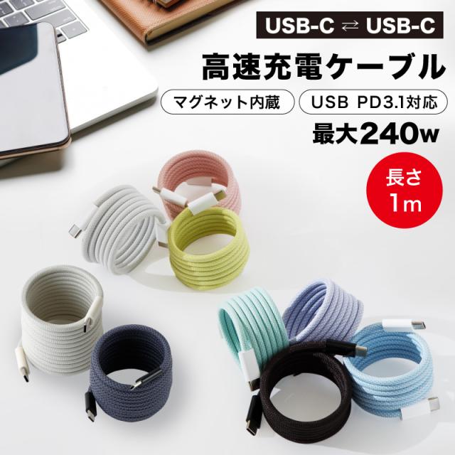 急速充電可能!usb type-c⇔usb-c 1mケーブル iphone対応 タイプcアダプタ付き 240w高速充電 480mbps高速転送 マグネット内臓で収納楽々 ナイロン/シリコン選択可 おしゃれなカラーバリエーション ホビナビ