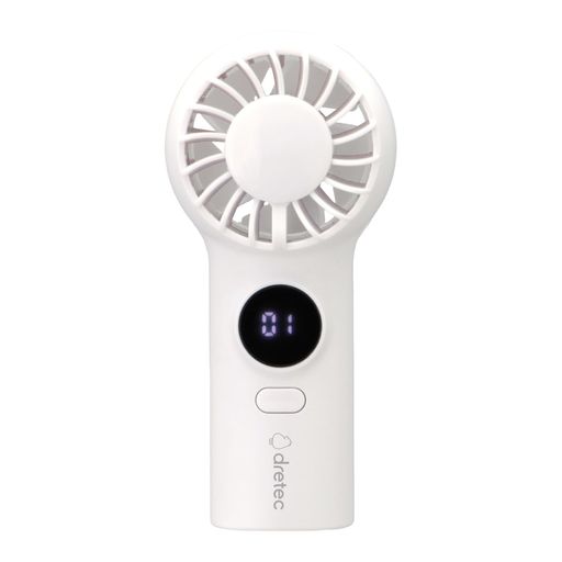ドリテック(DRETEC) てのひらハンディファン ミニサイズ 超軽量 強風 風量100段階 電池残量表示 旅先アウトドア 熱中症対策 コードレス 扇風機 ストラップ付き ホワイト