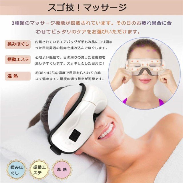 アイマッサージャー 目元マッサージ機 ホットアイマスク 気圧アイエステ Bluetooth温め機能 多周波振動 音楽機能 振動 タイマ