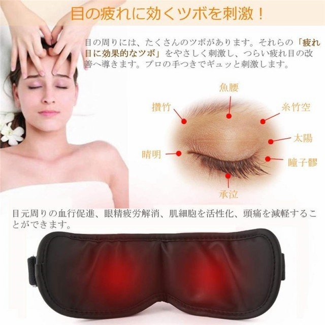 【眼精疲労の方に、安眠、快眠、不眠解消に】目の周辺の高低輪郭と、ツボの分布位置でデザインされてます。目元の周りの筋肉を運動させて、目の自然調節能力を高めて、目元の疲れ緩和、ストレス解消、リラックスできて睡眠改善という効果が行えます。