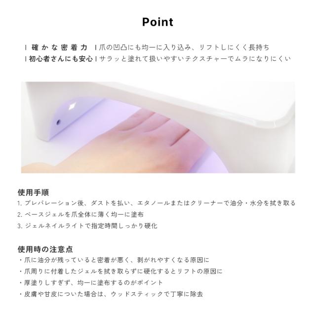 [注意事項] ・ベースジェルは密着度を高めるために完全硬化しない仕様になっております。
