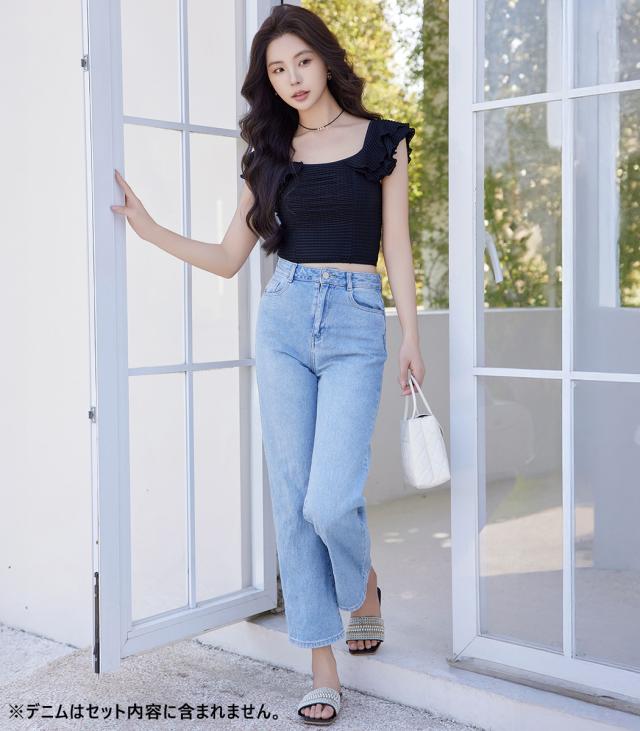 ハイウエストなので腰からお尻まできゅっと包み込みすっきりとしたシルエットに。