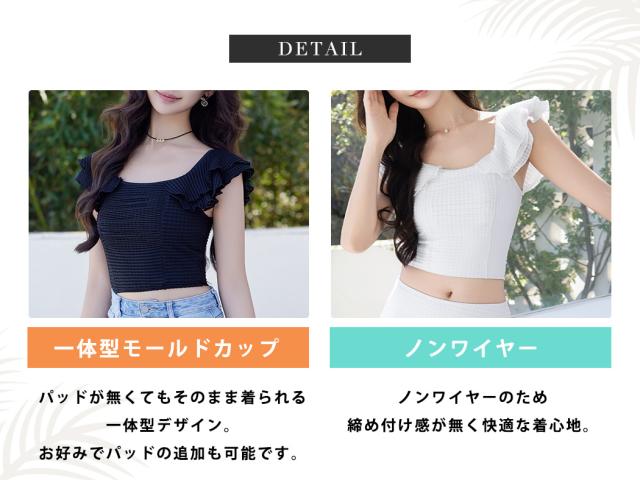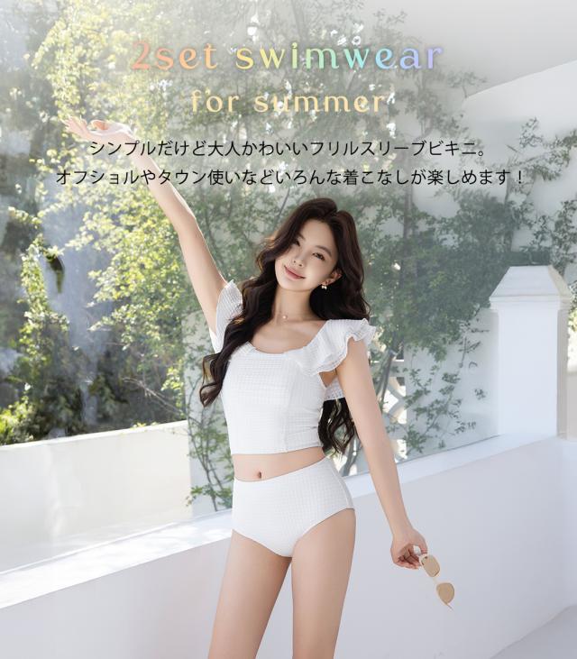 シンプルだけど大人かわいいフリルスリーブビキニ。