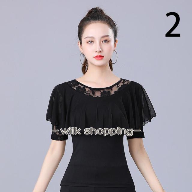 ラテンダンス トップス レディース 社交ダンス 日常着 ダンスTシャツ モダンダンス レッスン着 練習競技 デモ衣装 ダンスウェア 踊りブラウス