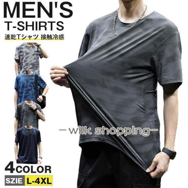 速乾Tシャツ メンズ 半袖Tシャツ 接触冷感 迷彩 ゴルフシャツ 夏 サマー 吸汗速乾 トップス 薄手 伸縮性 カットソー 運動会 スポーツ ランニング トレーニング 清涼 涼しい おしゃれ