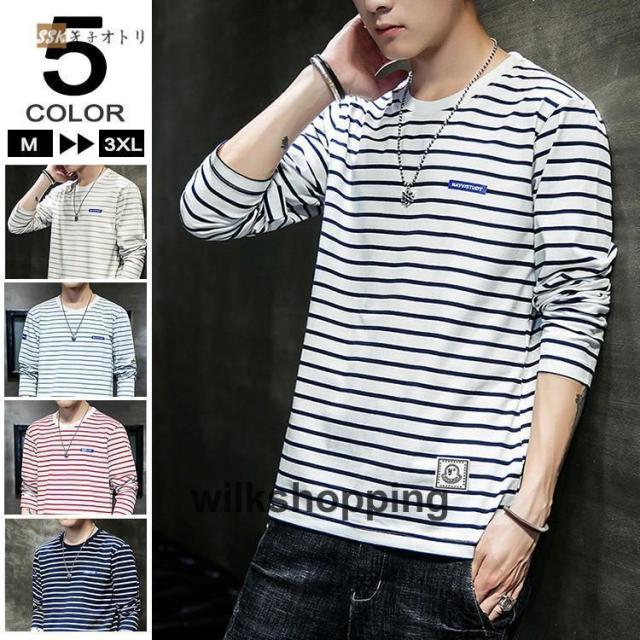 ボーダーTシャツ ロンT メンズ 長袖Tシャツ ロングTシャツ ロンティー クルーネック 秋服 スリム ファッション