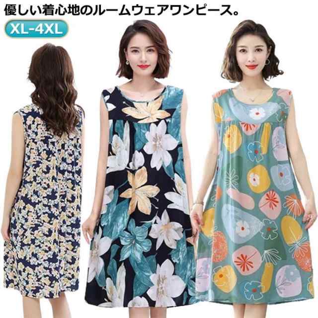 ルームワンピース レディース 夏 ルームウェア ワンピース ノースリーブ ロングワンピース パジャマ 綿 部屋着 タンクワンピース 寝間着 リラックス 大きいサイズ 花柄 総柄 薄手 ゆったり ナイトウェア カジュアル 通気性 夏用 大人 可愛い かわいい 送料無料