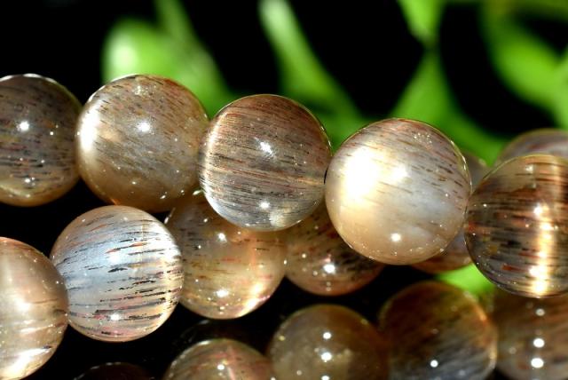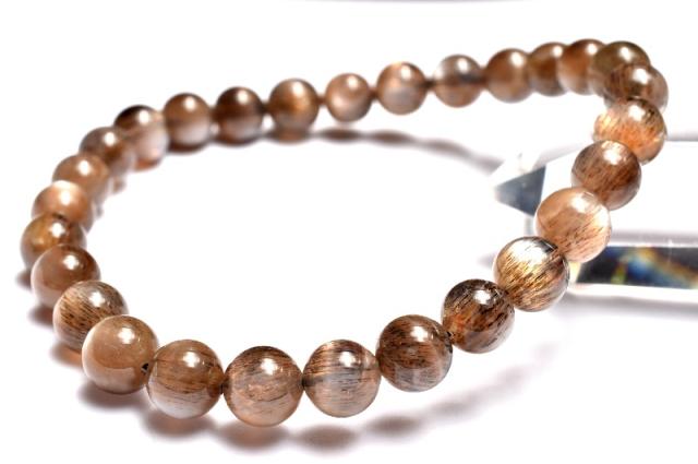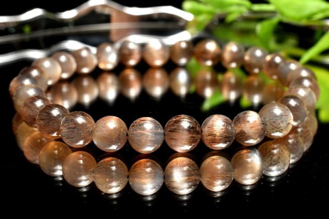 【1点物】2つの輝き◇インド産 ブラックサンムーンストーン 6.5mm ブレスレット 金運・仕事運_MA5604