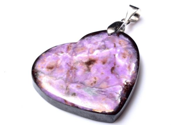 【1点物】シルバー925◇高発色 スギライト(杉石) 27x25mm ハート ペンダントトップ 厄除け【ネコポス送料無料】_PC4607