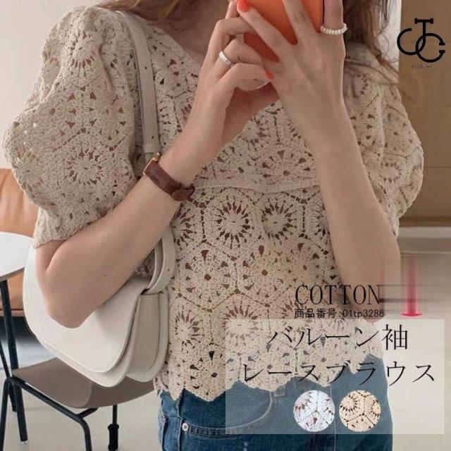 キーワード:フリル ブラウス レース 半袖 バルーンスリーブ バルーン袖 夏 プルオーバー Tシャツ 花柄 トップス レディース 透かし彫り シースルー 透け感 綿 コットン Vネック 半袖ブラウス 無地 ホワイト 杏色 体型カバー ゆったり カジュアル風 可愛い おしゃれ レトロ風 20代 30代 40代 50代
