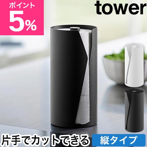 山崎実業 片手でカット隠せるキッチンペーパーホルダー タワー 縦タイプ 4903208100397 4903208100403 スタンド ペーパースタンド ケース 片手で切れる 卓上 収納 縦型 おしゃれ tower キッチン収納 yamazaki タワーシリーズ