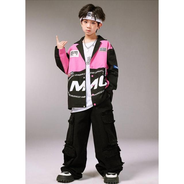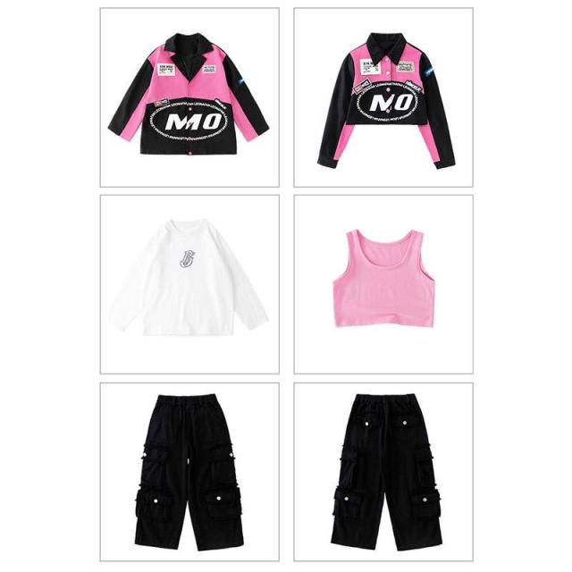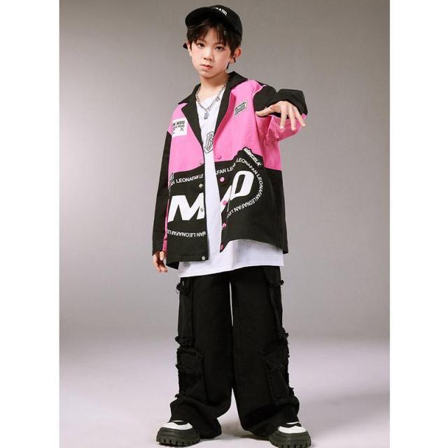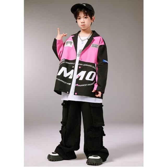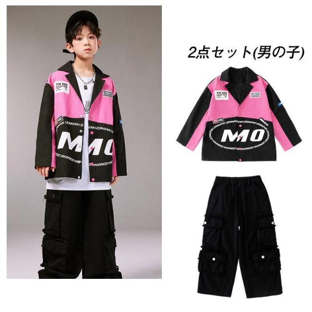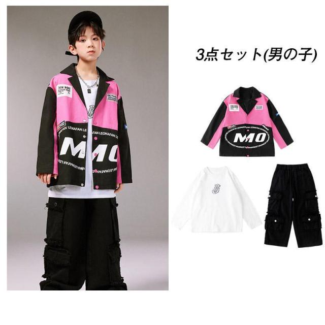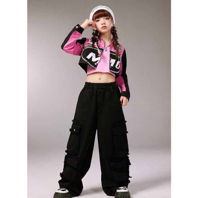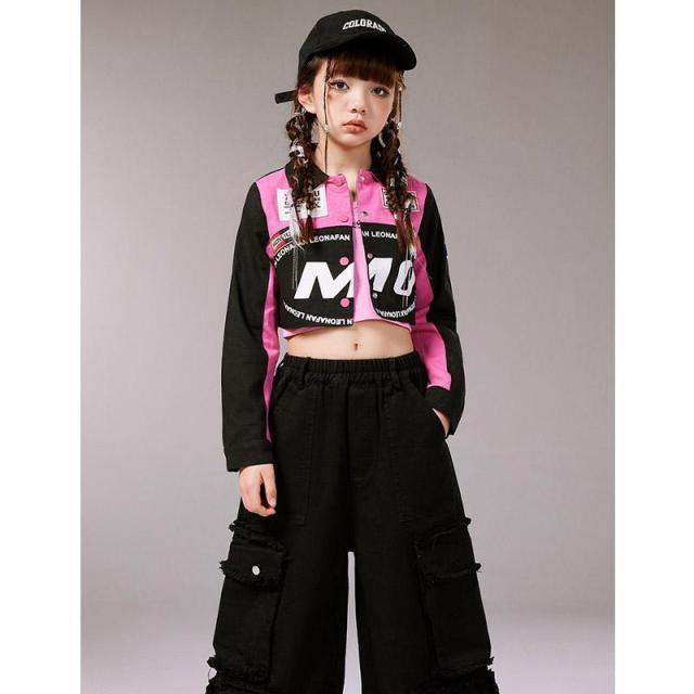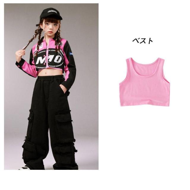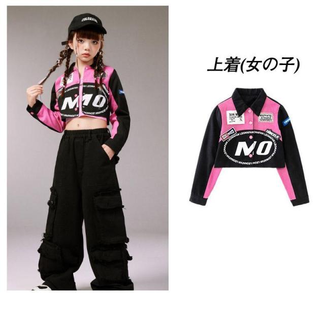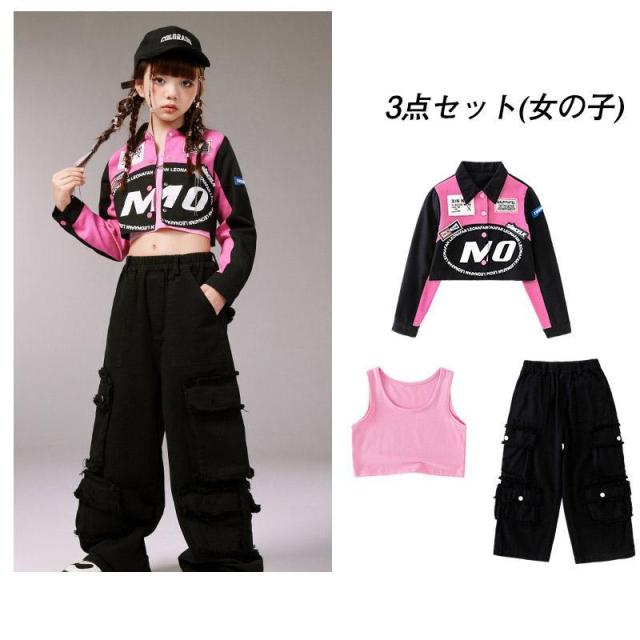 キッズ ダンス 衣装 ヒップホップ へそ出し トップス セットアップ 赤 カーゴパンツ チアガール衣装 長袖 tシャツ チアダンス 韓国 女の子 ジャズダンス ガール