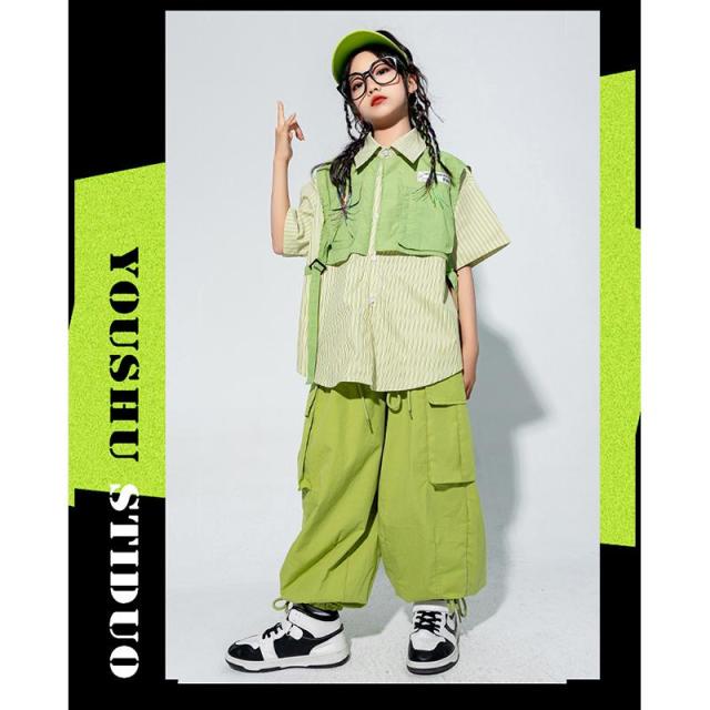 キッズ ダンス 衣装 ヒップホップ トップス セットアップ カーゴパンツ 子供の日 チアガール衣装 ステージ衣装 tシャツ チアダンス 韓国 女の子 ジャズダンス
