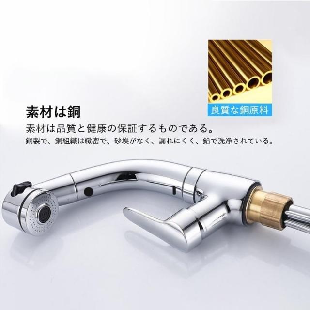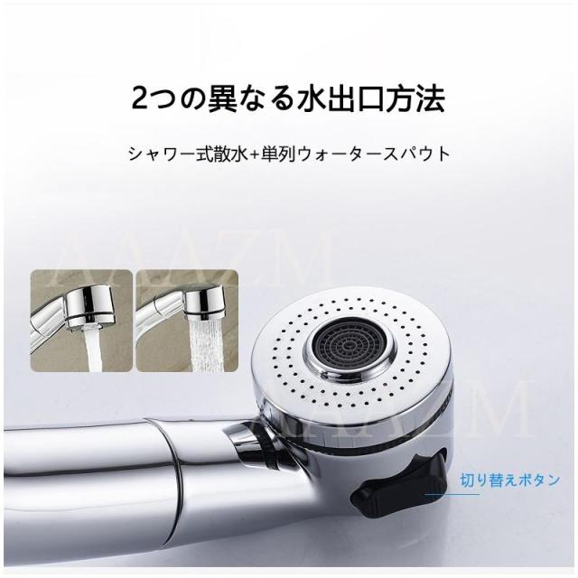 商品機能:2出水モード伸縮シャワー&バブル水流 湯水混合対応 360度回転 吐水 止水 温度調節