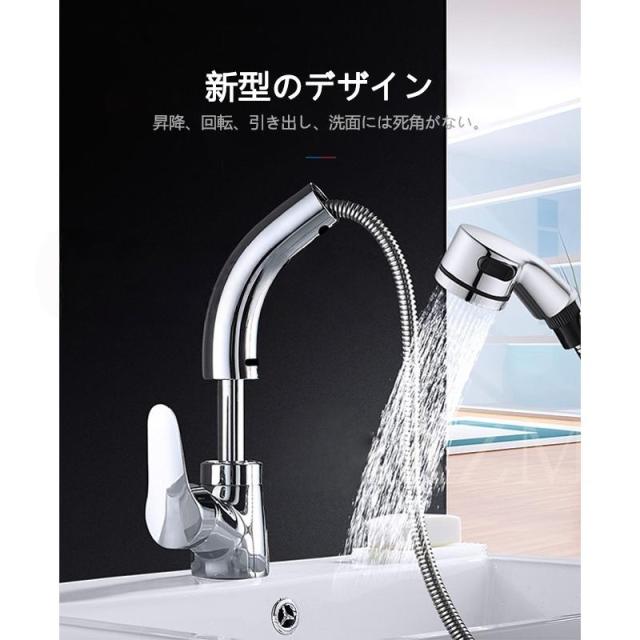 洗面水栓 蛇口 シャワー付き ワンホール 交換自分で 混合水栓 水道蛇口 洗面所用 キッチン 台所 浴室 洗面 おしゃれ 台付 洗面ボール 洗顔 洗髪 手洗い 水栓金具