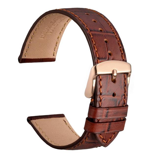 WOCCI本革時計バンド22mm イタリアンレザー クロコ型押し腕時計替えベルト ブラウン/ローズゴールドバックル