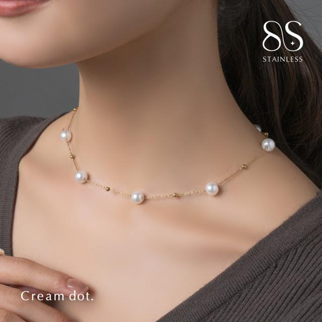 【ゆうパケット送料無料】 ステンレス製 ネックレス 金属アレルギー つけっぱなし サージカルステンレス レディース ショート チェーン パール ステーションネックレス 華奢 メタル パーティー お呼ばれ 大人 ゴールド
