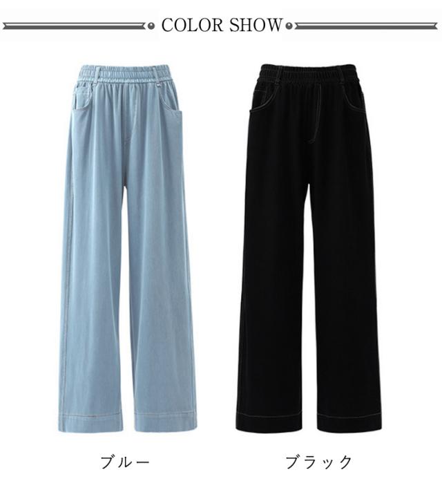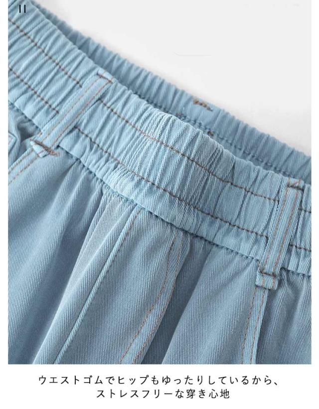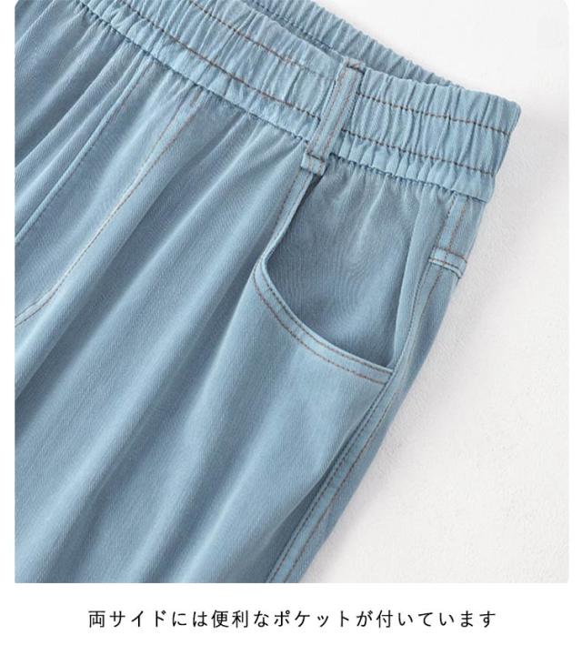 接触冷感 ウエストゴム パンツ レディース デニムパンツ ワイドパンツ ひんやり ボトムス 涼しい 冷感パンツ ジーパン 接触冷感 ハイウェスト 細見え ジーンズ 薄手 長ズボン イージーパンツ カラーデニム ふんわり