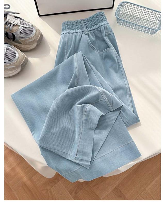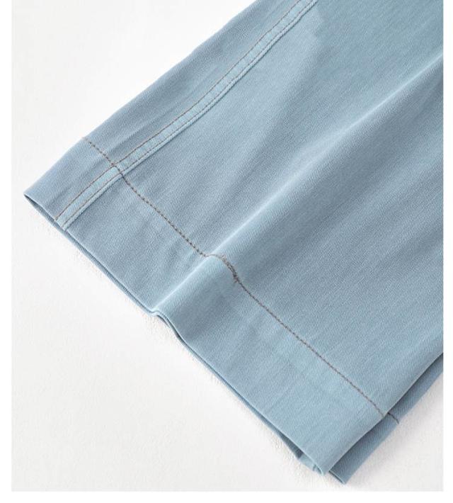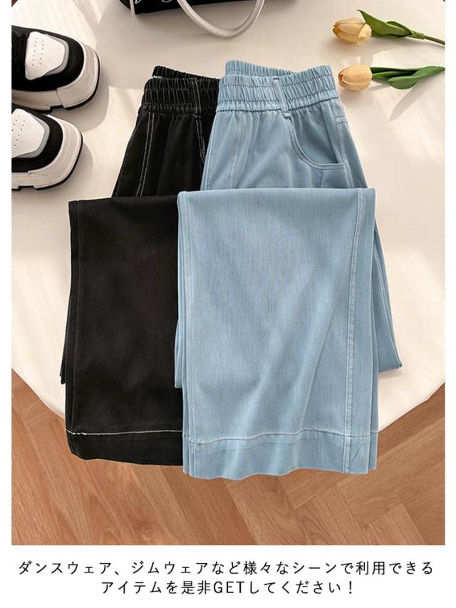 | 軽薄生地を使い、蒸し暑い夏にピッタリなデニムパンツです。 冷感機能を持った特殊な糸を混紡した生地で通気性が良くて、どんな暑い天気も活躍できる! ウエストゴムでヒップもゆったりしているから、ストレスフリーな穿き心地。 両サイドには便利なポケットが付いています。 ハイウエスト設計にストレートなシルエットで脚長効果も期待できます。 ダンスウェア、ジムウェアなど様々なシーンで利用できるアイテムを是非GETしてください! | |