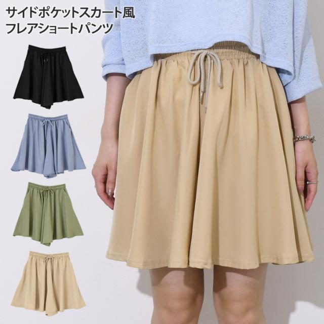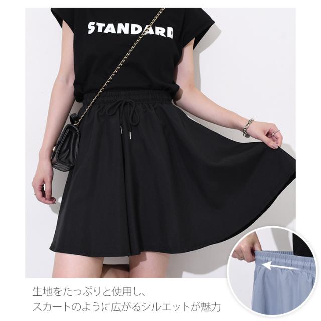 新作 サイドポケットドローストリングサラサラフレアショートパンツ レディース 夏 速乾 涼しい スカーチョ スカート風 ワイドパンツ ゆったり スポーツ 部屋着 楽ちん 薄手 膝上 ウエストゴム 軽量 短パン ズボン