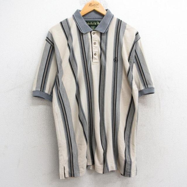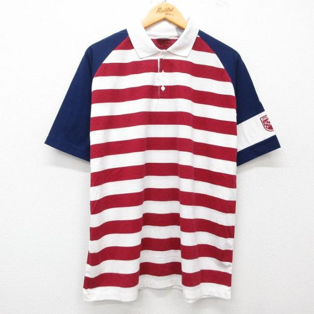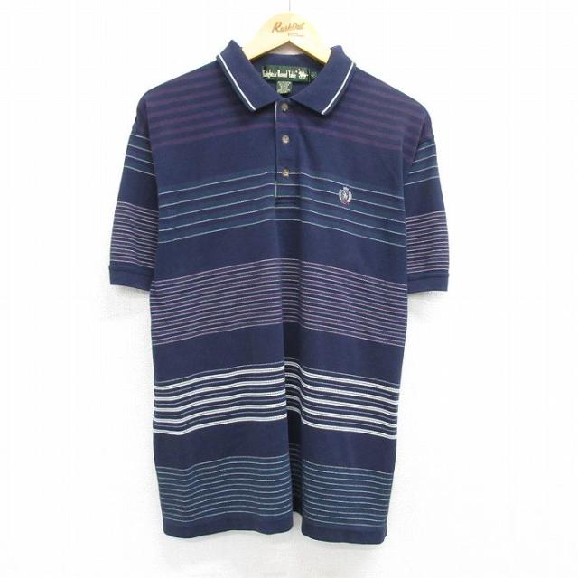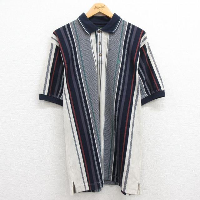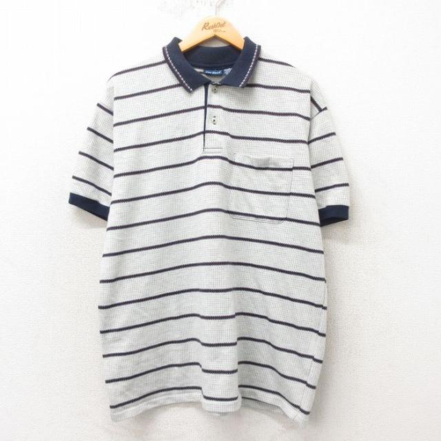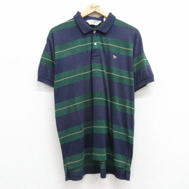 古着 シアーズ 半袖 ポロ シャツ メンズ 90年代 90s ワンポイントロゴ 濃紺他 ネイビー ボーダー XLサイズ 中古 トップス 中古 古着