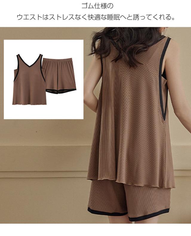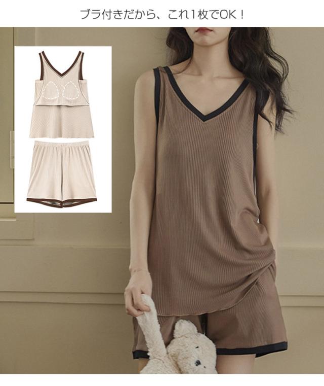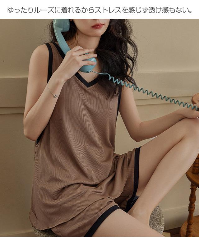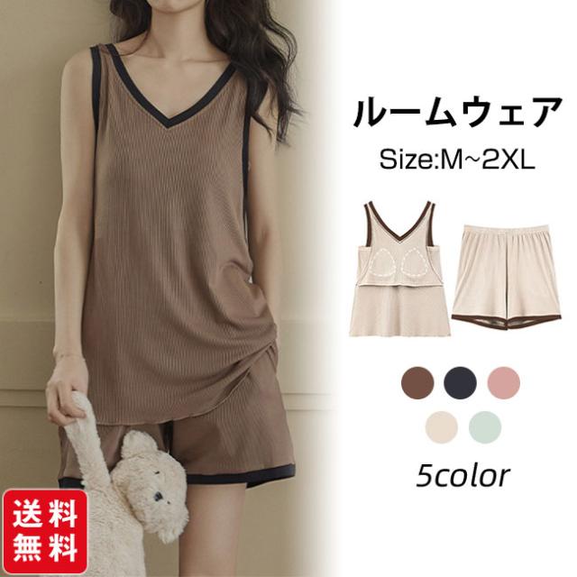 【50 円 OFFクーポン】新作 ルームウェア レディース 部屋着 パジャマ セットアップ 上下 タンクトップ ノースリーブ カップ付き 短パン 半ズボン ショートパンツ ゆったり ルーズ ゴムウエスト 涼しい 伸縮 通気 ソフト 柔らか