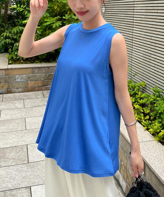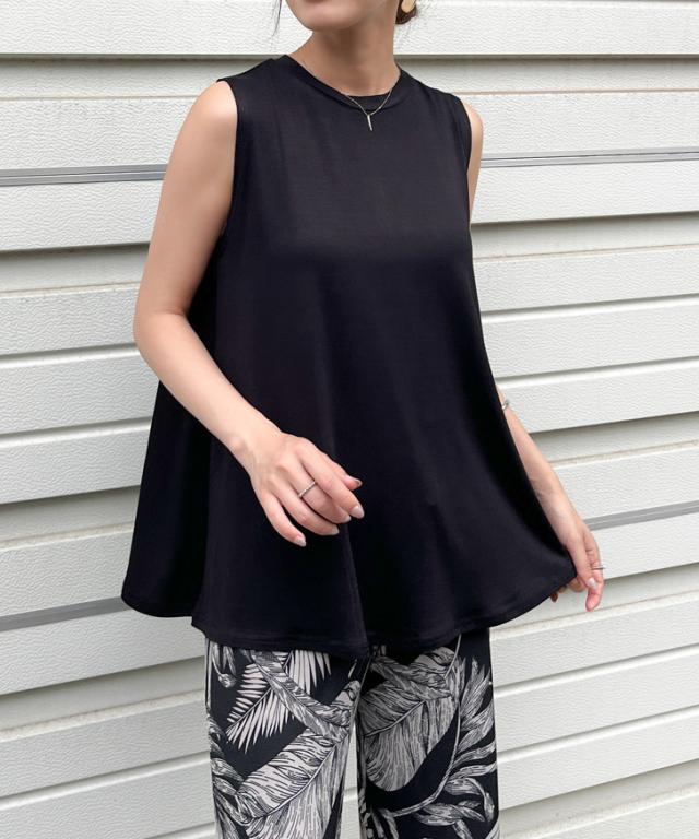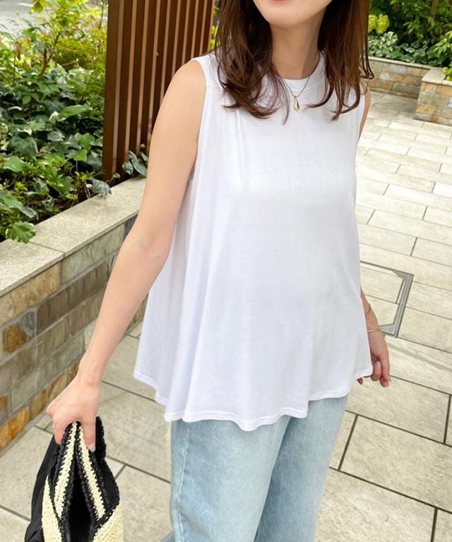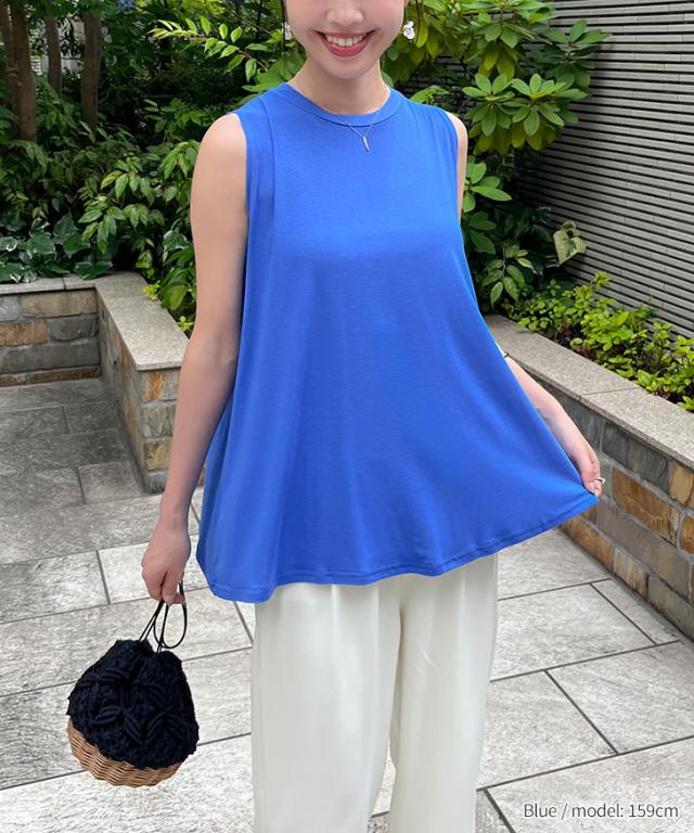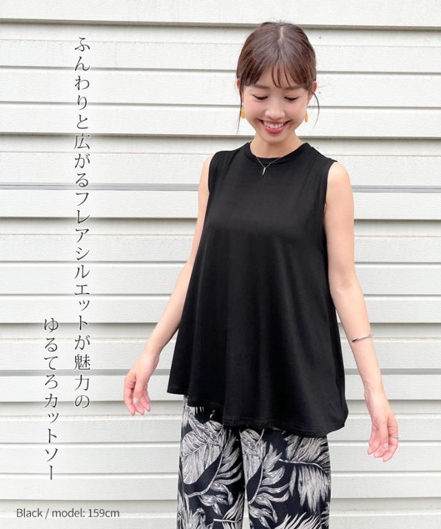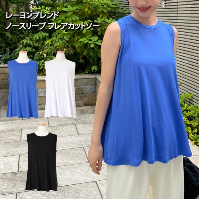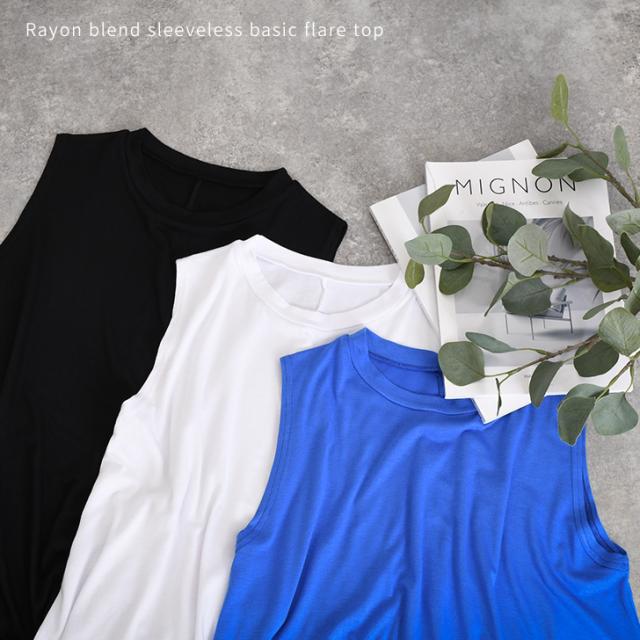 新作 レーヨンブレンドノースリーブベーシックフレアカットソー レディース トップス タンクトップ 涼しい 夏 ゆったり ワイド ロング丈 無地 薄手 Aライン 丸首 おしゃれ 通勤 オフィス 上品 カジュアル 普段着