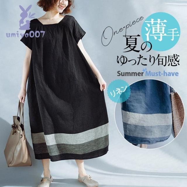 ワンピース レディース ロング丈 マキシ丈 リネン 半袖 シャツ ワンピース 春 夏 春服 夏服 きれいめ ゆったり チュニック トップス