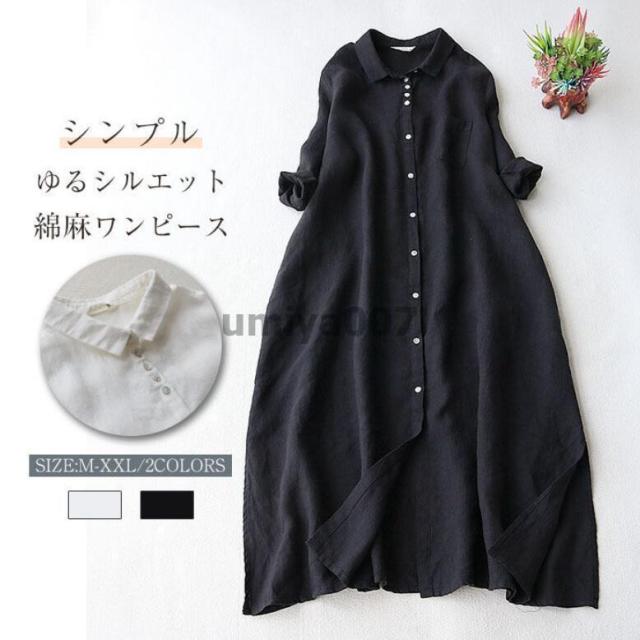 シャツワンピース ワンピース レディース ロングワンピース 長袖 秋 春 ロング丈 マキシ丈 シャツワンピ 体型カバー 無地 きれいめ 羽織り 夏