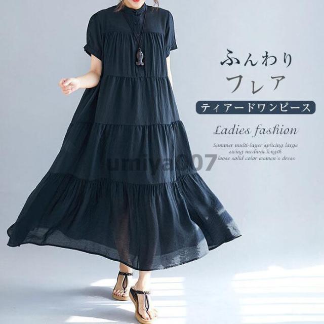 マキシ丈ワンピース レディース ワンピース 大人可愛い 夏ワンピース ワンピ 半袖 ゆったり 夏 透け感 ゆったり 大きいサイズ ふんわり 体型カバー