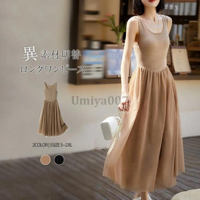 ワンピース レディース ロングワンピース キャミワンピース Uネック チュールスカート チュール ワンピ 春 夏 ノースリーブ タンクトップワンピース インナー