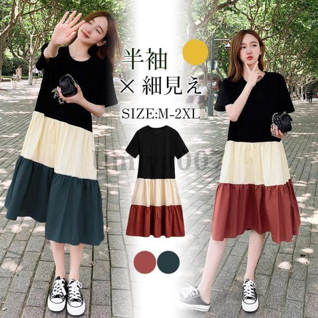 ワンピース レディース 半袖 スウェットワンピース マキシワンピース 大きいサイズ ゆったり Aライン 無地 夏 ロングワンピース 着痩せ 切り替え