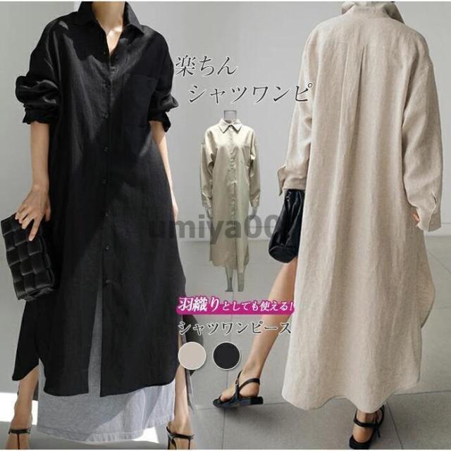 シャツワンピース ワンピース レディース 長袖 秋 夏 大きいサイズ コットンリネン 綿麻 きれいめ ゆったり ロングワンピース ロング丈 羽織 体型カバー