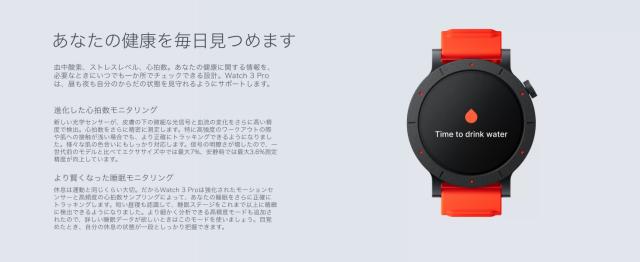 | ブランド |cmf by nothing 商品名 |CMF WATCH 3 PRO カラー |ダークグレー、ライトグレー、オレンジ サイズ・質量 |ダークグレー:25.8 x 4.7 x 1.44cm、約51.9g | ライトグレー:25.5 x 4.7 x 1.52cm、約51g | オレンジ:25.8 x 4.7 x 1.45cm、約52.4g 素材 |金属製本体 + 液体シリコン製ストラップ ディスプレー |1.43インチ AMOLED ディスプレイ | 466 x 466ピクセル | 650ニト(標準)、最大670ニト | リフレッシュレート 60FPS | 自動輝度調整機能をサポート ウォッチフェイス |カスタマイズできるものも含む 120を超えるオリジナルウォッチフェイス(アニメーション、インタラクティブ、常時表示バージョンから選べます) スポーツ |スマートムーブメントアルゴリズム、7つのアクティビティの自動認識を含む131のスポーツモード ヘルスケア |自動心拍数計測、24時間心拍数計測、休息時心拍数計測、エクササイズ時心拍数計測、心拍数のリマインダー、平均心拍数計測、血中酸素計測、血中酸素のリマインダー、ストレスモニター、月経周期のトラッキング、水分補給のリマインダー、立ち上がりのリマインダー、歩数カウント(終日)、消費カロリー測定、距離測定、エクササイズ時間測定、アクティブスコア、睡眠検出(強化された睡眠トラッキング) バッテリー |350mAh、通常の使用法蒲黄で最長13日間、負荷の高い使用方法で最長10日間、省電力モードで最長60日間 センサー |6軸加速度センサー、ジャイロスコープ、環境光センサー、心拍と血中酸素飽和度センサー GPS | デュアルバンドGPS (L1 + L5) / GLONASS / GALILEO / QZSS / BEIDOU ワイヤレス |Bluetooth 5.3対応 マイク | 対応 防水防塵 | IP68 GPS |GPS/GLONASS/Galileo/QZSS/Beidou その他のインテリジェント機能 |Bluetooth 通話、ダイヤル画像をクラウドからダウンロード可能、ダイヤル画像をフォトアルバムから選択可能、ウォッチフェイスの切り替え、呼吸トレーニング、メッセージ通知、音楽再生コントロール、タイマー、ストップウォッチ、アラーム、天気予報、スマートフォンを探す、フラッシュライト、カメラの遠隔操作、リマインダー、音声アシスタント、カレンダー、計算機、世界時計 アプリ |iOS 13 以降、Android 6.0 以降をサポート ※ 日本語対応 その他の機能 |録音内容の書き起こし、ESSENTIALニュース、BLUETOOTH通話、ウォッチフェイスをクラウドからダウンロード、フォトアルバムの写真をウォッチフェイスに設定、ビデオをウォッチフェイスに設定、ウォッチフェイススタジオ、ウォッチフェイスの切り替え、呼吸トレーニング、メッセージ通知、音楽の遠隔操作、タイマー、ストップウォッチ、アラーム、絵文字メッセージでのアラーム、天気予報、スマートフォンを探す、フラッシュライト、カメラの遠隔操作、リマインダー、音声アシスタント、カレンダー、計算機、世界時計 パッケージ内容 |CMF WATCH 3 PRO、充電ケーブル、ユーザーガイドと安全に関する情報、製品保証に関する情報 |