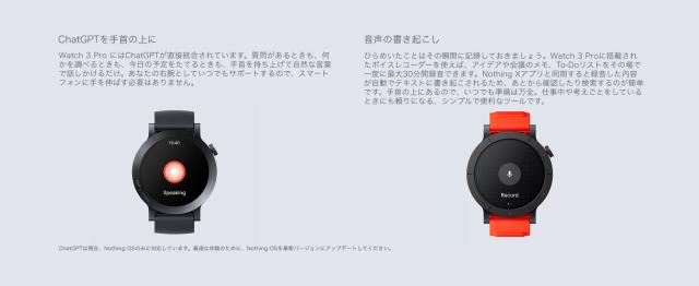 最新のChatGPTを統合し、質問やスケジュール管理を音声で操作可能。録音と自動テキスト変換機能も備えており、会議メモやアイデア記録にも活躍します。スマートウォッチでAI体験を実現。※Nothing OSのみ対応。