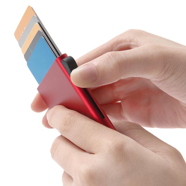 ●艶と光沢が美しいアルミニウムカードホルダーはファッション性の高さも魅力のひとつ。