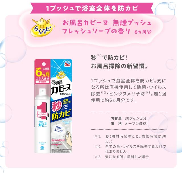 ・らくハピ お風呂カビーヌ無煙プッシュ フレッシュソープの香り 6ヵ月分×1点
